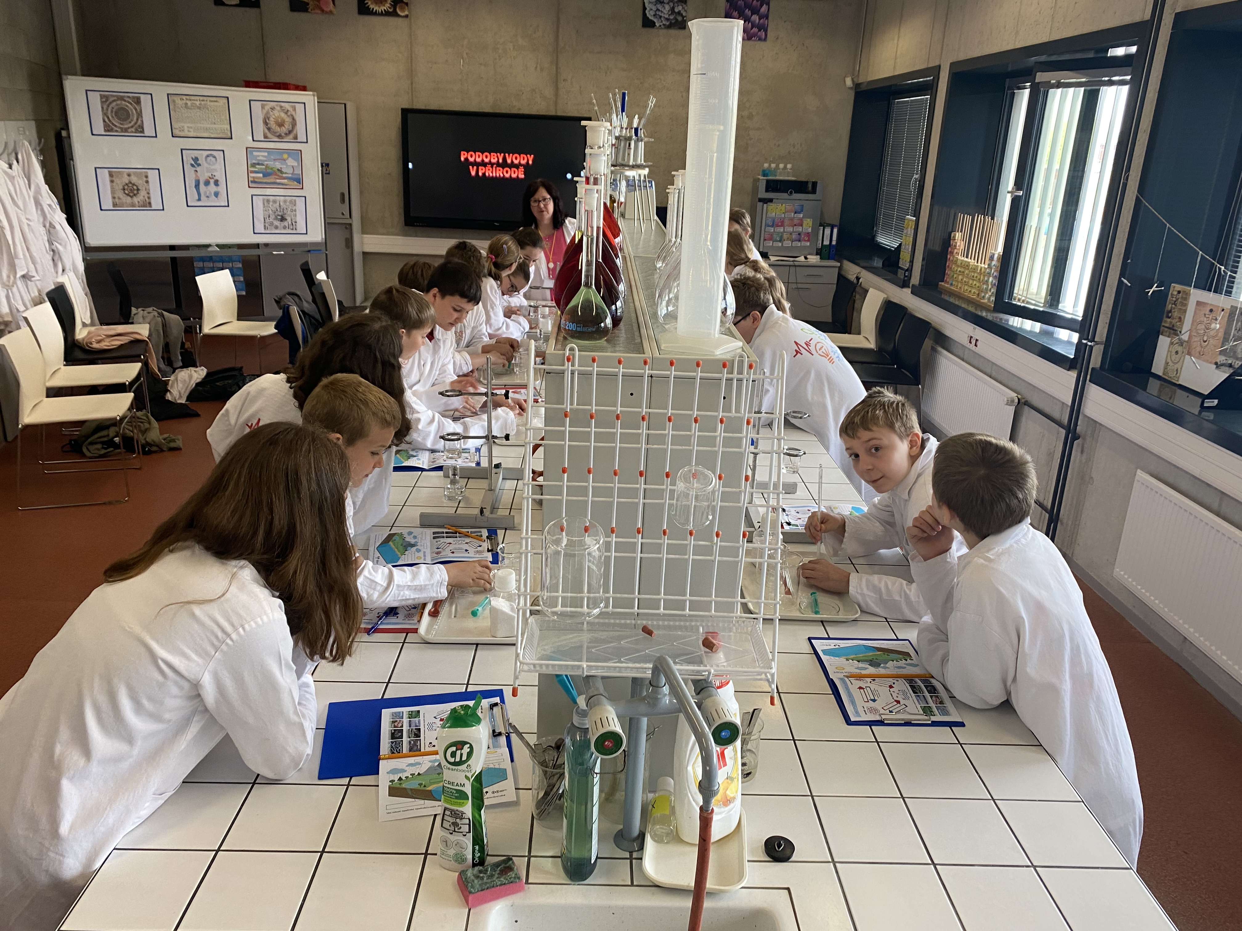 Dne 24. 4. 2025 žáci 5. ročníků navštívili Svět techniky v Ostravě, kde pod vedením odborníka pracovali v chemické laboratoři a pozorovali, jak vypadá kapka vody pod mikroskopem a co všechno dokáže. Tento výukový program školám, s podporou města, není jediný, který je připraven pro naše školáky. Pozorování světa kolem nás a technologie, se kterými se setkáváme nebo se kterými se budeme setkávat v budoucnu, jsou neodlučitelnou součástí vzdělávání. Těšíme se na další z nich.